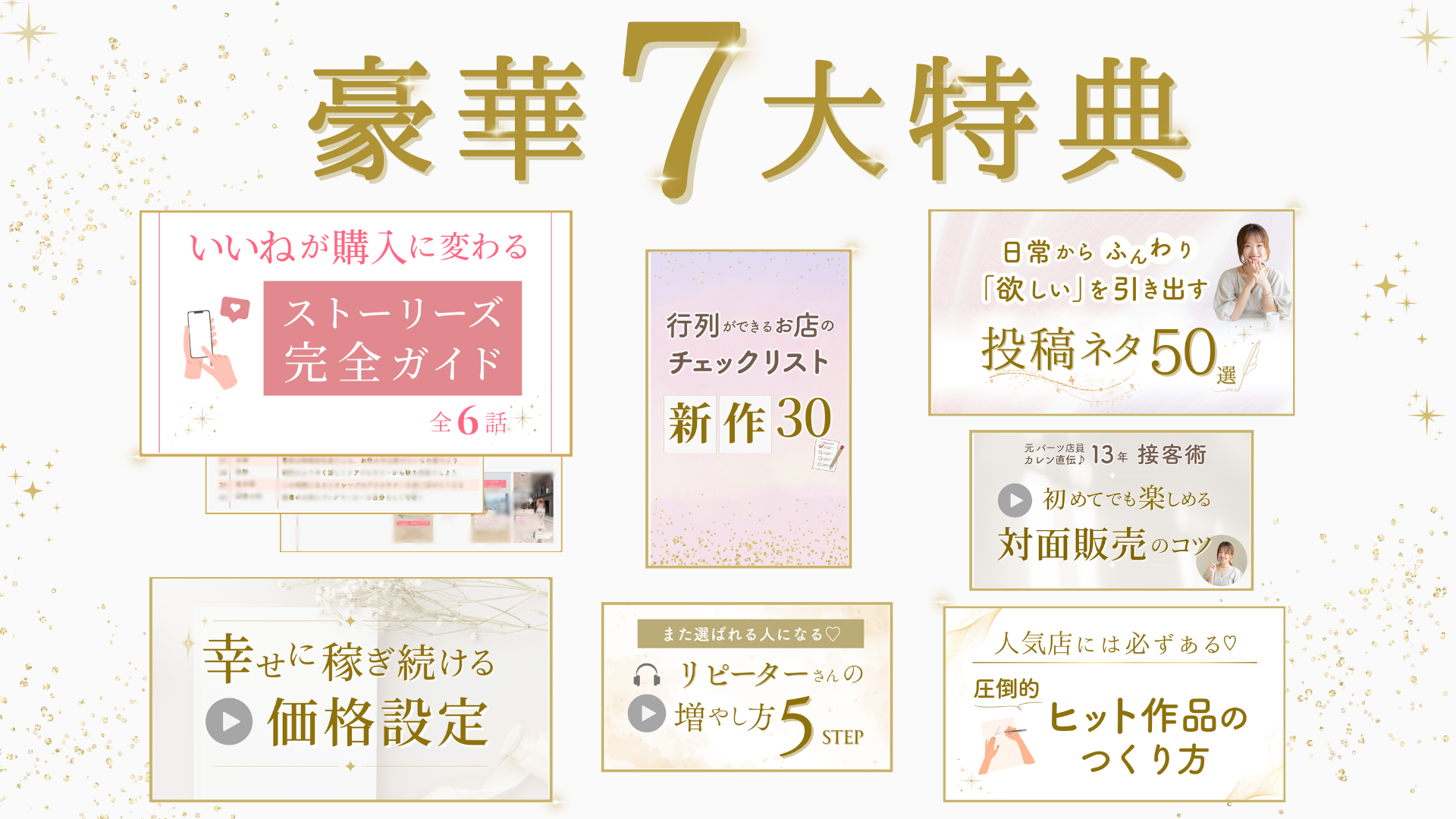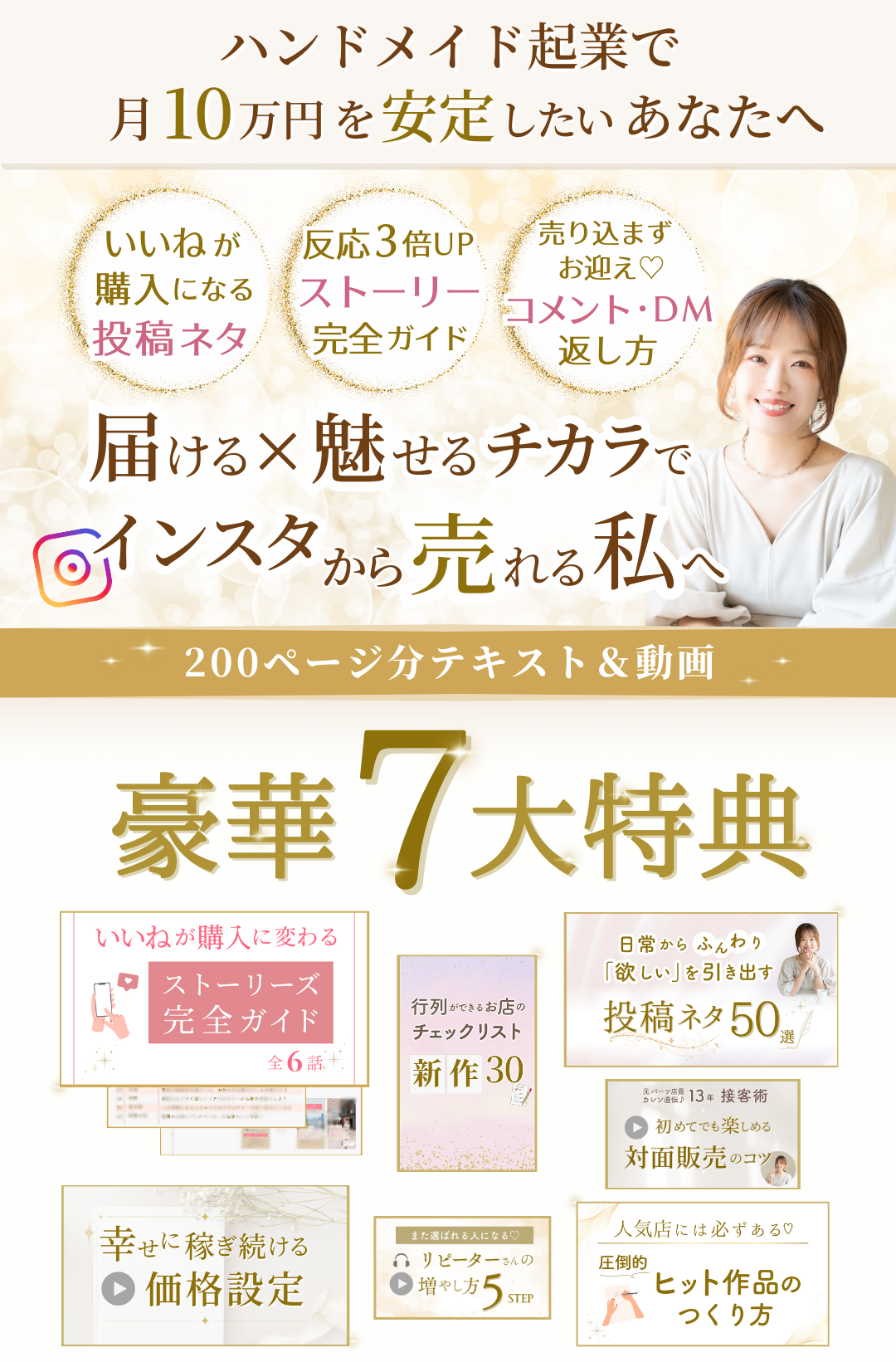 ハンドメイドをお仕事にしたい方、少しでもご共感いただけた方は、お近付きの印にまず、無料の7大特典をご活用いただけたら幸いです♡